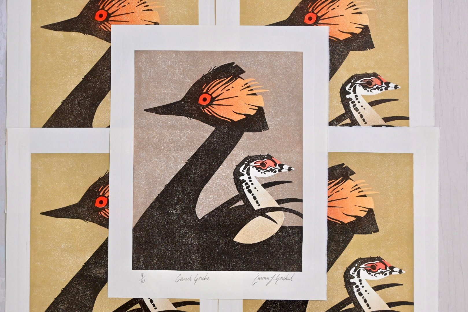 Eared Grebe - Limited Edition Lino Print